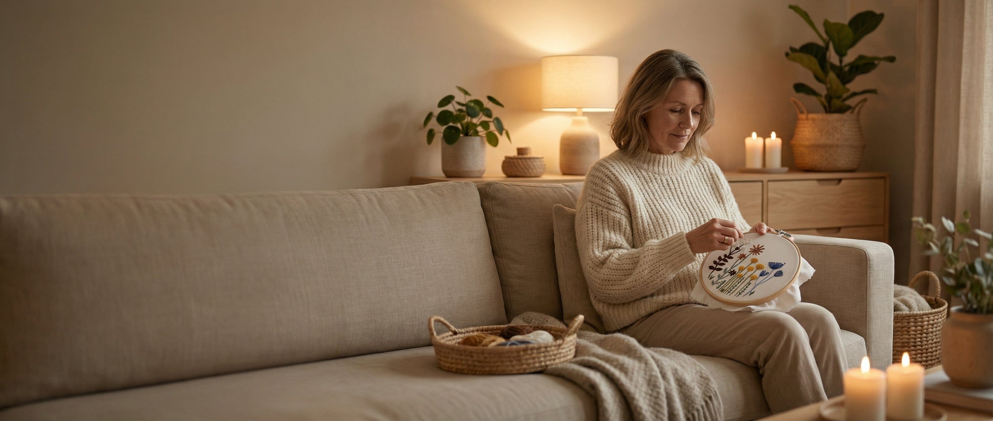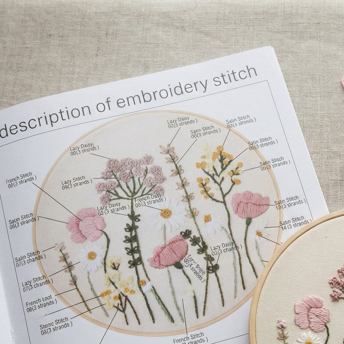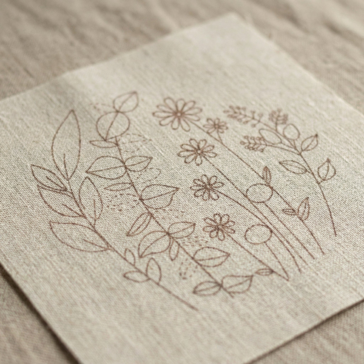 Genom enkel brodering växer ett mjukt blommotiv fram — ett objekt som inte bara skapas, utan får ta plats i ditt hem.